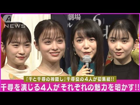 周りに突き動かされてこう進んでいく姿 みたいなのがめちゃくちゃ応援したくなる んですよお稽古場でちょっと間違えちゃっ た時のリアクションがめっちゃ千ひろです 分かる舞台戦と千ひろの神隠しの主人公を 演じ目覚ましい活躍を見せる女優の4人が 初めて集結ですこの4人で揃うていうのは 本当珍しいんじゃないですかはい初めて 初めてか稽古はもうそうなんですよ スケジュール的 4人で集まったの初めてですね初め稽古場 でついに揃わなかったんです同じだけ走っ て転んでやってるのでなんか同士ですね 舞台戦と千の神隠しの制作発表会見が行わ れ初演から主人公の千を演じる橋本神奈 さん上石モさんそして今回から参加となる 川リナさん福知もこさんが揃って登壇同じ 役柄を演じる4人がそれぞれの魅力を 明かしましたりっちゃんとももちゃんの ちひろそしてマリナちゃんのチヒを早く世 にお広めしたくてたまらないですなん だろうな素朴なんだ けど周りに突き動かされてこう進んでいく 姿みたいなのがめちゃくちゃ応援したく なるんですよももちゃんはお稽古で ちょっと間違えちゃった時のリアクション がめっちゃちです 分かるこんなすひやる人が本当に ハプニングがも素晴らしいハプニングを たくさん残してくれてそう手あげてわーっ て言うんですよかえさんちゃんから先輩 2人はどんな風に見えてるの先輩って言言 のやめてもらいですかこの先輩たちは本当 にもうかなちゃんはすごく明るく無邪気な 千尋でかつ真の強い女の子っていうのを 演じてて華やかになると言いますか本当に 見てて心踊るような千尋ででモネちゃんは 序盤から真の強さみたいなものがすごい 見えていてもモネちゃんもすごく真面目な ので真面目に一生懸命生きる10歳の 女の子っていうのを舞台上で表現している のが本当に2人とももう性格ももうなんか 月と対応ぐらい違くて全然違う2人が なんかこう合わさって言って同じものを 作ってるっていうのを間近で見させて もらうていうすごいうん だと思うので本当にあの学ばせてもらって ますあの日本の方にも世界の方にもあの 思う存分楽しんでいただけたらなという風 に思っておりますありがとうございます 舞台戦と千の神隠しの千ひろを演じる キャスト4人が集結同じ役柄を演じる4人 がそれぞれの魅力を明かすテレビ朝日AI アナウンサーはさとゆいがお伝えしました