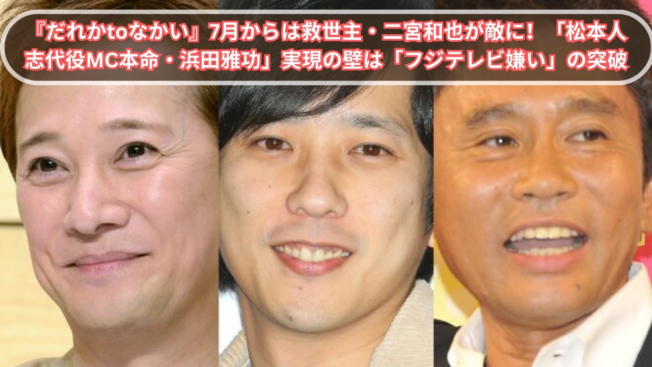 『だれかtoなかい』7月からは救世主・二宮和也が敵に!「松本人志代役MC本命・浜田雅功」実現の壁は「フジテレビ嫌い」の突破