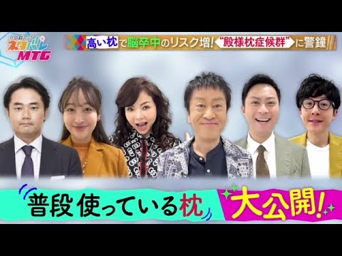 ですトイレこんなに今俺もせね俺もトイレ 大好き店入ってもトイレとか見てちゃちゃ そこの備品とかもやっぱねテンション ちゃうよねトイレやっ違もんね今トイレが トイレのおかげで高速道路のサービス エリアは集客率が変わるんですよあ麗だ からやっぱ日本ってやっぱアニメと俺も うん自慢自慢敵するら世界に文化です世界 の人がみんなびっくりするのやっぱ日本の トイレのトイレよりどう進化そうそう決っ てる時に頑張れ頑張れとか 言いらをせかです出なくなりますねそれは いら健康思考が高まる中体に関する気に なるニュースが1つ目は国立循環器病研究 センターの研究チームが新しい病気の概念 として発表した殿様枕商工群殿様が使って いたような12cm以上の高い枕で寝る人 ほど脳卒中の原因の1つである特発性骨 動脈帰りの発症率が高くなってしまうと いうものそしてお酒が大好きな竹内さんや 吉田さんは要チェック労省が初めて発表し た酒ガイドラインそのきの内容と はこの後皆さんの枕やお酒の量について ミーティングしますさあまずはこの殿様枕 商工群というものなんですけれどもまさに その殿様が寝ていたようなこのね高い枕の 昔のでその枕が高いことによって首があの ように大きく曲がってしまうんですねそう なると首の後ろを通っているその血管を 圧迫してしまってはい寝返りを打った時と かにその血管を損傷してしまって脳を引き 険性が高まってしまうと枕に頭を乗せない で12cm以上高いで15cm以上になる ともう使用が進められないほど極端に高い という風に定義れるも私天気的な殿様枕う あれ使ってあのこだからこの状態でないと 寝れないえでえに34cmはない枕に持た れてるぐらいの感じです持たれて寝る感じ ですねはあ 殿様枕商工群を発表した国立循環器病研究 センターの農神経内科江頭医師にお聞きし たところ高岡さんのように高い枕の人は 素材が柔らかい枕にするだけでも首後ろの 血管への負担が軽減し脳卒中のリスクも 下がるそう ですこの後スタジオのメンバーが普段使っ ている枕を大公開結構寝れます めちゃくちゃ寝れるええ買おうかな に 応えスタジオの皆さんは普段どんな枕を 使っているのか写真を取ってきてもらい ましたこちらこれもう お姉さん絵してこともうあかんほんまに オープニングでだいぶサービスしました こんなんあの裏を元見せるためにねあえて