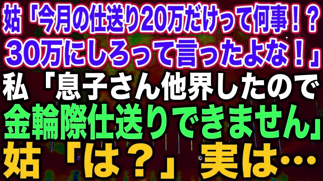 【スカッとする話】姑「今月の仕送り20万だけって何事!?30万にしろって言ったよな!」私「息子さん他界したので金輪際仕送りできません」姑「は?」実は