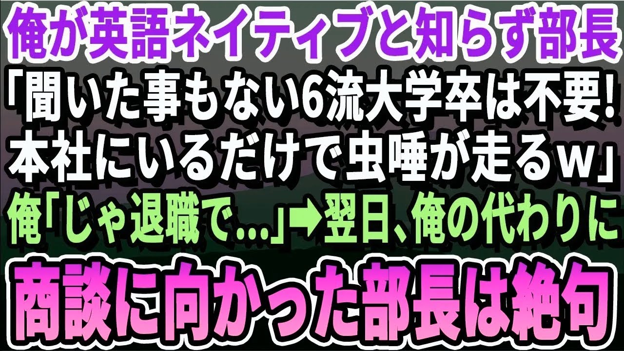 【感動】俺が帰国子女で英語ネイティブと知らない部長「聞いたこともないFラン大学出てる君は本社にいらんw」俺「わかりました、辞めますね」→翌日、俺のかわりに取引先へのプレゼンに向かった部長は震えだし