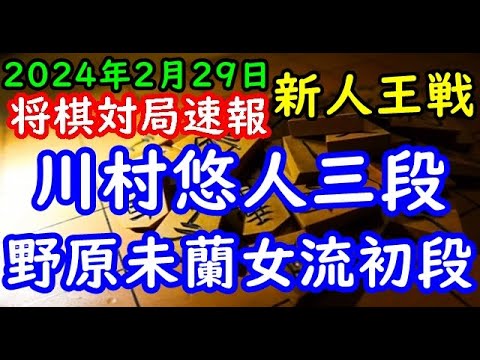 将棋対局速報▲川村悠人三段ー△野原未蘭女流初段 第55期新人王戦トーナメント戦[相掛かり]「主催:しんぶん赤旗、日本将棋連盟」