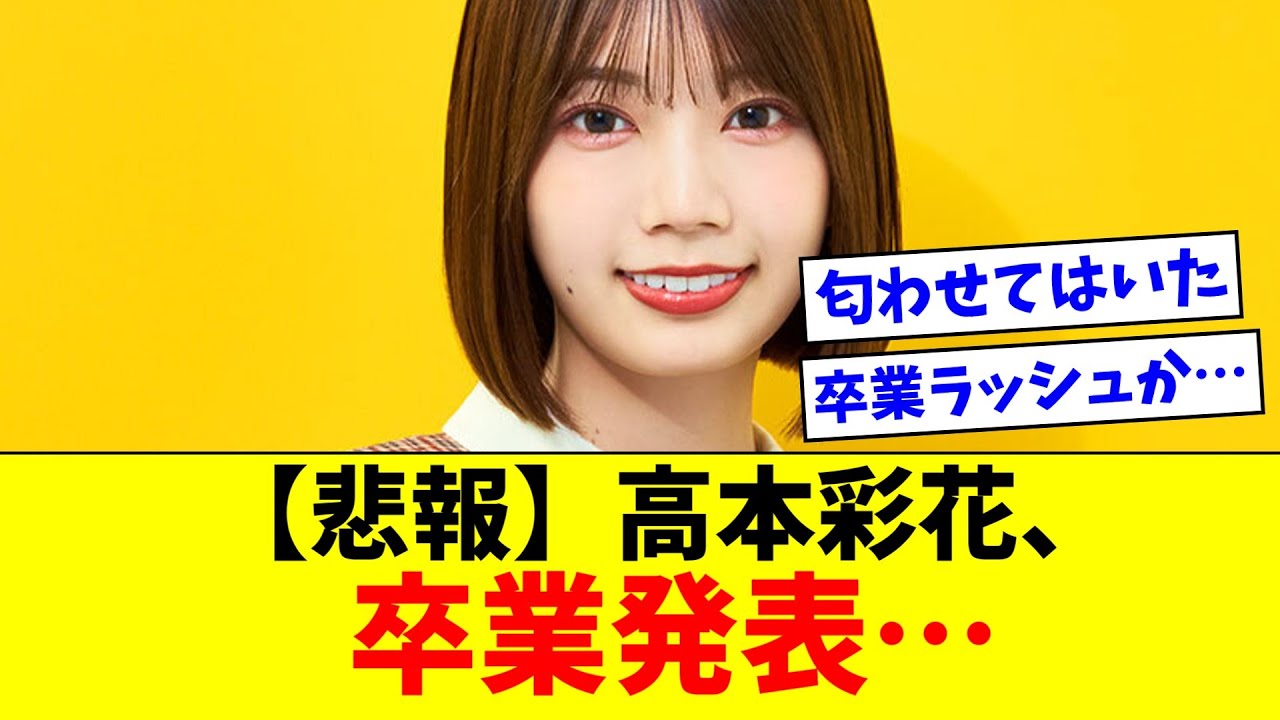 [音楽] 高本彩佳卒業 発表高本彩佳が公式ブログにてグループの 卒業を発表これに対するお様の反応が こちら 悲しい覚悟はしてたけど寂しいね3時は 予想できんてリマちゃんチックも2人しか いないじゃん今シングルはキだけだと思っ てたから驚いたわライブがあるならそこが 最後になるんかな月1ペースで卒業発表 きつい てあり去年から卒業カウントダウンって 言ってたからなあれ見て覚悟はしてたけど このタイミングは予想外だな2年前の ドームでやっぱり区切りはついてたのかな なっちもそうだったし一期さんはいつだが やめても仕方ないと覚悟してたけどいざる とやっぱきついわアイドルにおいて25歳 がやっぱり1つの壁だな いつのヒか妄想する日向坂46の未来に 自分はいませんでしたショックだけどこの 一言で妙に納得してしまった自分もいる これきついよな持ち前の文章の上手さが こんな形で刺さるとは8年って十分やり きった言える期間と密度だったしねこれで ひなでマグロ大賞を見る夢が立たれたのか 卒業記念企画でパっとやりましょう やは初期の頃は序列高めであの当時に デビューしてたら確実にフロント面だった はずだけどなただ2生が優秀すぎたせいで デビュー時には追い抜かされてしまってフ のメンバーでもあったかな浅草姉妹の モデル面で起動に乗ると思ってたわあは 大切りもうかったんだよな貴重なB型を 失いたくないダダのモデル役声春の母さ役 良かったよねとにかく卒業前に写真集出し てくれマイシングルで卒業メンバーてくる にてるななんか憂鬱だ [音楽] わ