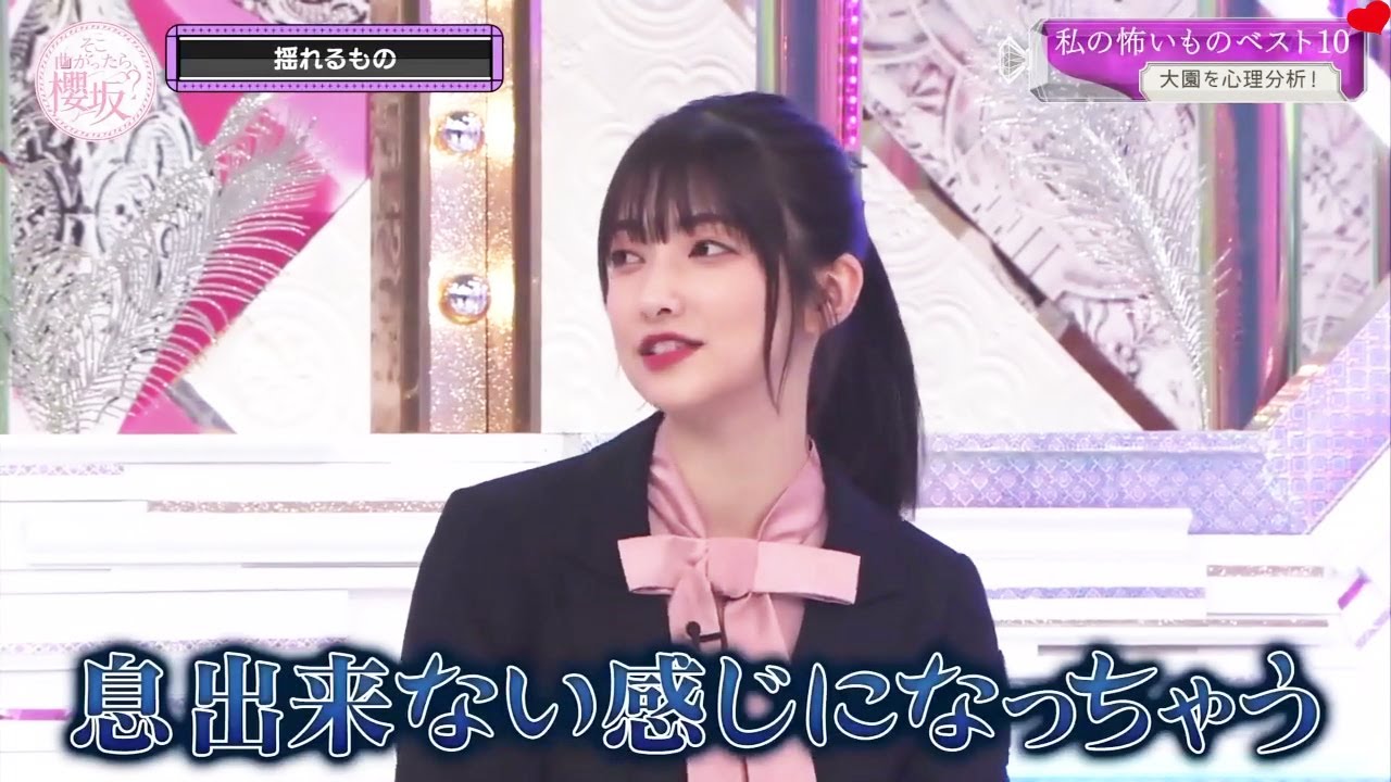 [音楽] そこまったら 桜坂さ今週も始まりましたそこ曲がったら 桜坂司会のサーベとですお願いしますさあ そしてこ桜ちゃん [拍手] だ怖い [音楽] ピね2度とこの番組で言うなって言った はずですけどねえ本日の企画早速発表 いたしますこれって変ですか私の怖いもの ベスト テ今回メンバーは事前アンケートで怖い ものをランキング形式で10個回答お化け 屋敷や虫1人ぼっちの部屋など定番の怖い ものをあげるメンバーが多かった中 ちょっとでわかんないのがあるんですよね ま人それぞれねなんで怖いのっていうのが あるみたいなんでそれをちょっと色々分析 していこうということになっております 早速その心理分析していただく先生お呼び しましょうこちらの方です どうぞ あモ2先生ですお久しぶりでございます久 ですモ先生 [拍手] ですカ欅 気待も含めこれまで8回出演ジト先生から いただいメンバーとも馴染みの深いア先生 に真理分析をお願いし ますあか見ていただいてるんですよね アンケートをねそうですね拝見しました 率直なこう感想としていかがですか割と そのねワンパターンになるのかなと思っ たらそんなことはなくてやっぱりそれぞれ に非常に個性がなるほどはいあったのでま 分析の市もそれだけあったという分析して みの内分かるわけですねそうです丸裸です アモン彦先生が来ればアモンニ彦なんです からよろしくお願いいたしますまずトップ バッターは小池周りに理解されにくいと いう怖いもの は難しかった10個出すのはそうですねで も結構日常の中にあったのでポンポン ポンポンとは出てきましたうんさあという ことで早速小池の怖いもランキング見てみ ましょう こちらはあいやもう10位からわかんない じゃないですか本当だ深いってことかな ってことすか ねよくわかんないなこれは東京スカイ ツリーの根元ってのはどういうことあの柱 みたいなのがいっぱい合わさってスカイ ツリーでできてるじゃないですか下から見 た角度の柱が思った以上にめちゃくちゃ