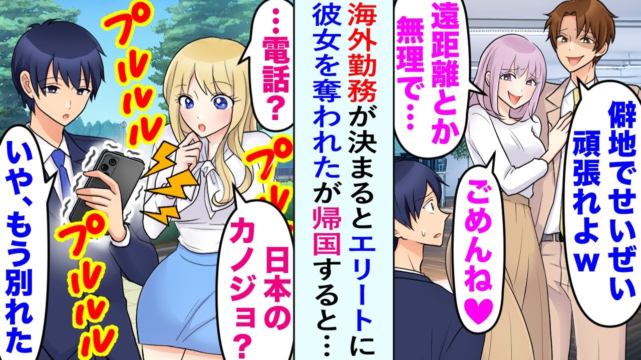 【漫画】海外転勤が決まったら、エリート同僚に彼女を奪われてしまった。しかし数年後、俺が日本に金髪美女を連れて帰国すると立場逆転で…【恋愛マンガ動画】