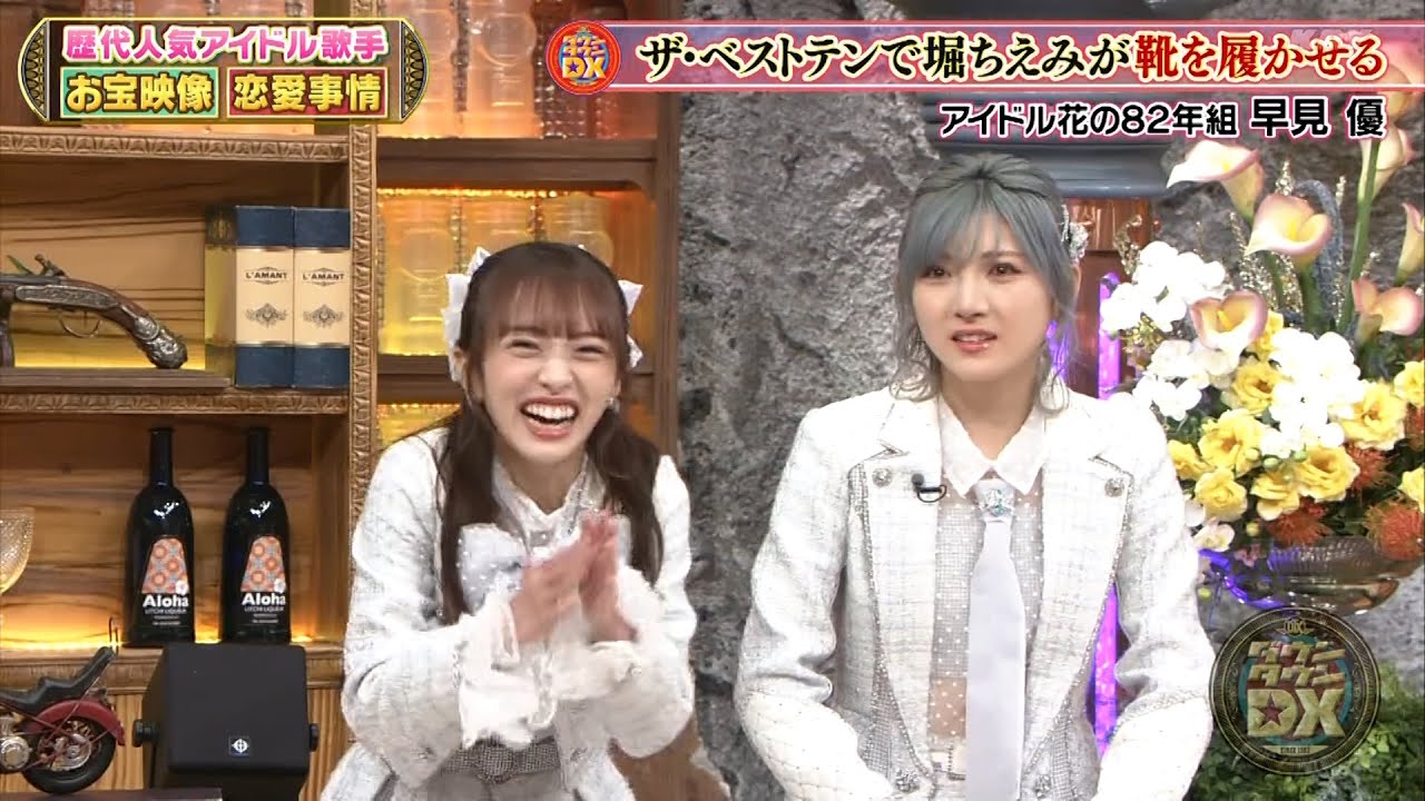 ですよでマッチが行ってね怖かった怖かっ たとか言って戻ってきてみんなで七並べし たの覚えて ますトラントランプトランプゲーム ばっかりそうえでもアイドル同士で同じ 部屋ってマネージャーさんとか怒らない ですかマネージャーさんには内だったのお やすみなさいって言ってままみんなでで ここに部屋入集まってパ誰も間違いは おかさなかったんですか間違いはなかった けどそこであのあペアのブレスレットし てる付き合ってんだとかいうのは分かり ましたすいすごいじゃあそれはっきり誰と 誰か言ってもらい ますもうね40年前だから忘れちゃったん ですすごいあさんどうなのあなた末大会出 たんですか私末大会デビューしてすぐの時 に出させていただいてはい私結構やっぱ ちょっと水得意だったのでうん私ガチ泳ぎ し てゴールしてパッて立ったらもうダトの1 位だったんですよはいはいやたと思って たらなんかまだシとしてるんですねえでえ なんだろうと思ったら ちょっと間がいて皆さんがそろそろそろっ てこうゴールをされてはいはいはいはいそ したらある方がやりましたね1位ですお めでとうございます言って嘘やろはいえ2 位の1人そうま2位だったかどうかも ちょっともう定かじゃないぐらいなんか ババババってゴールをされていてだからま 新人だしはいでまもちろん私がゴールした ところでお前誰やねんていうぐらいそう いや誰がインタビューされてたんじゃそん 時誰だゆさん [拍手] 私 あれえ芸能界そんないや嫌な話やなや いやいやいやいや私違いますあ1位ですよ とかやでも泳いでらっしゃるから多分 わからないも先にゴトしちゃってるんで いやいやいやとんでもないちょっととんで もない全然裏恨みとかも一切なっていや もちろんです全然じゃあなぜ今ここで [拍手] 長さんは長さんあれ私も似たような経験が あって私は僅差でしたけどあのなかった ことになってるような感じでしたえ1位に なったんですけどあのレコード会社対抗 運動会でうんで2位になった方にもう いきなりこうマイクがシュッと言って私は もう画面から一切その後映らなかったえ それあその実際の映像あんねんあえこの めちゃくちゃ怖いぞデビュー前の黒さりと 高橋南のお宝映像大公開え
