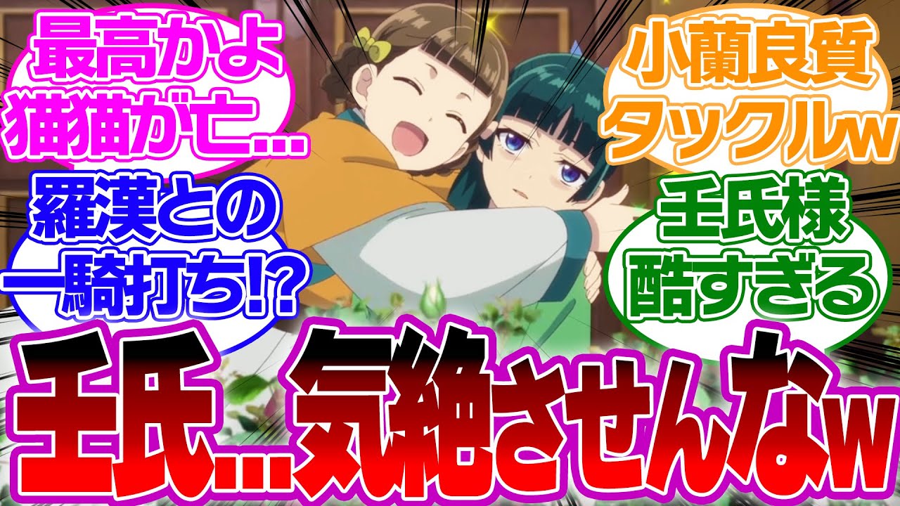 【アニメ22話】小蘭再登場!?壬氏の頼みにより猫猫が気絶…ついに猫猫が羅漢に勝負を挑みに!?についての興奮と衝撃の視聴者の反応 【薬屋のひとりごとリアルタイム反応集】