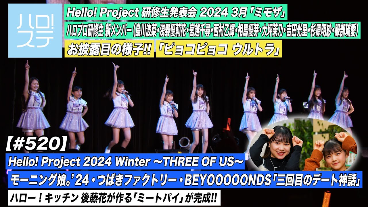 【ハロ!ステ#520】ハロプロ研修生新メンバーお披露目「ピョコピョコ ウルトラ」Hello! Project 2024「三回目のデート神話」ハロー!キッチン後藤花 MC:石田亜佑美&松本わかな