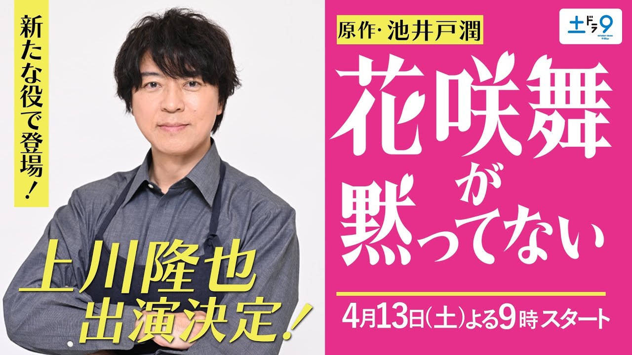 上川高です花崎舞が黙ってないが新 シリーズとしてスタートいたし [音楽] ます僕は居酒屋花崎の店主で前の叔父花崎 県として出演いたします平成版とは違う形 で前の良き理解者として彼女をサポートし て参りたいと思います花咲舞を改めて作り たいんですがというお話を井の1番で話を 持ってきてくれたんですねその時に僕の方 からできればどんな形でも関われたら 嬉しいですというお話を持ちかけさせて いただいたんです最初にそうして関わり たいと口から出たのはやはり僕の中でそれ だけこの作品が大きなウトを占めている ことの間違いのない証なんでしょうしこの 物語がまた帰ってきたことの方が僕にとっ ては嬉しいことです まずアドバイスは何にもございませんはい 魅力的なお2人ですのでお2人出なければ 作れない花崎前がこれからスタートして いくことにこそ僕は期待したいと思ってい ますしそれを間近で見られることが楽しみ です花咲舞が黙ってない是非ご覧ください