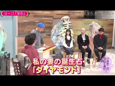 じゃない10kgいや10kg行くからな どうなんだろうああ10kgうわあ池さん どうすかうーエビレフトが8000m ぐらいですよねはいはいじゃその逆 8000mその逆8000mプラ 4000mしてみてください そうですね 1万2000Mお見事12kmなんです いや冷めちゃうねそんなにですか冷め ちゃうのよ本当にねダイヤモンドぐらい すぐ冷めちゃいました か12kg12kgこ12kgって俺 惜しいじゃない10kgだからも10km めちゃくちゃいいとこついてはいだから 10kgした時にこれ空気読めよて僕 なんか思ってしまいました申し訳ないすい ませんやっぱそうそうはいいうことで どんどんこれ宝石に興味湧いてきたんじゃ ないですかこれまあまあそうね うん嘘でももっとってきたと言うてくれよ ちょっと盛り上がっていただけると私も話 やそうですよねいま本当にねあ書いてるん です よまあまあまあじゃないんですよじゃまだ こううわっとそこまでねまこっからでしょ ここでしょもちもちすいませんねお願いし ますねそんな小峠さんですがおおそうね 後々テンションは最高調理小峠さんの テンションにも注さあということで宝石と ただの石の違いこれで何だと思いますか なんだろうねいややっぱもその輝いていう かああそう美しさですよねうんじゃないの 美しさあとね2つあるんですよでやっぱり 池田さんかなりダイヤモンド硬いですよね なるほどうんうん硬さ そうですね硬さ耐久性ですよね耐久耐久性 ですよ ねできてんの かできてんのかですよねなんか耐久性って 引っかき傷とか割れにくいとか汗がついて も色が変わらないとかいろんな耐久性が はいあってそういうものをやっぱりクリア してくれないと身につけてたら色がきばん じゃって価値なくなりましたじゃ困るから っていうことなんですねそういう意味で 耐久性とこと ねそしてもう1つがですね珍しいなという 希少性なんです性ね希少性宝石と呼ばれる にはこの3つが大事とのことちなみに耐久 性このモースコードという基準がよく用い られるそうでモースコードっていうこれは 引っかき傷に対する強さの基準で1が1番 弱くて10のダイヤモンドが1番強いん ですねこれ1812年にドイツのモスさん ていう人が考えたんですけど単純で石同士