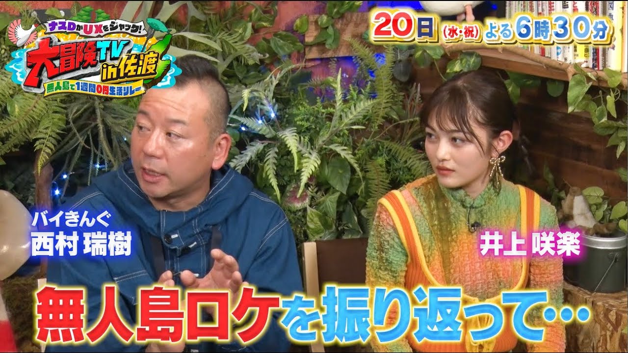 合バチに入ってますよろしくお願いします テレビの人気 番組T とはの無人 レラメンバーの3人が合計1週間円生活 を実は私井上さんを応援し に 元頑張ってましたよそうんですなロケを 振り返って出演者の皆さんがトークして くれましたすごいです同じ無人島でリし てくてこれって俺見てるいやまだまだ見て ないやつまたった年のだ からでも本にそのを分からずえここ無人な んですかみい無人島でした楽しかったです かどうでし た楽しかったですよ楽しかったないあの なかなか 過酷でした過酷過酷でしたねうんどうでし たいや過酷でしたよむちゃくちゃだけど やっぱね達成感がやっぱあるねうんうん 楽しみ西村さん井上さんに過酷だったと 言い放つの 無人 [音楽] そしてディレクターは代未の [音楽] 豪快理での海のを [音楽] 尽くす潟名も作っ [笑い] [音楽] ちゃうM
