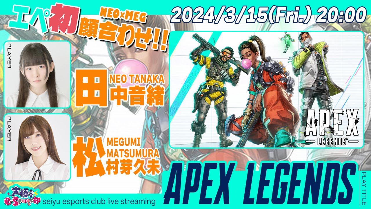 初エペ顔合わせ!!ねおめぐ出撃!!【Apex Legends】田中音緒/松村芽久未 生放送【声優e-Sports部】