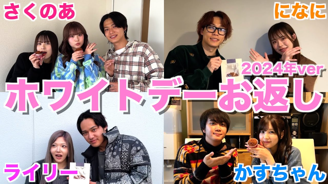 そあっちゃんも送る時リマをまず笑わせた いっていう思いで送ってると思うだから あのキさ出た確さちゃんがつけてたのと 一緒のつけててあそうそういうもあって あれ出た後街歩く自身ない俺無かあれを もし自分が恋愛をしようと思った時に見 られると思た生きていけるいや全振り かっこいいなザ み一番かっこよくないその仕事人として俺 らはその仕事できないってやっちゃうけど アムリはさやるわけできるできないです いやかっこいいその面に関してはかっこ いいけどその面がもっと響いたらいいな そんなにことしてんのにごい て位はうなっちゃっ危ねえ危ねえいや語意 は優馬だから速度上に負けたってことあ そうかそれめちゃくちゃかっこいいから ああいうことして自分の地位が上がって るっていうのはめちゃくちゃかっこいいよ 無事に回収できましたとはいいうことで じゃ早速本日の企画発表してまいりたいと 思いますうということで本日の企画女性 クリエイターにホワイトデ私に行こう 2024年 バージョンえあの先日ですねあのセラと ホワイトデを作る動画あのとこしたと思う んですけれどもそこで作ったものを皆さん に渡しに行くよということで動画としては すごいシンプルですねお返しで渡してま そのまちょっと食べてもらって感想 いただくとおそうそれだけですはいやっぱ 前回はもらう側だった感想とかありました けど今回やっぱ別の緊張がありますよね いや本当に自分たちが作ったもの食べと なんかなんかめっちゃバレンタインの時も 女の子たち緊張してくれたやいやそうだね 緊張してたね緊張って可愛くない爆発だし ねあんたなんかねキリちゃんにお弁当作っ てもらっいやあれは爆発するやろか弁当し がだってさトマトをさ普通に食べてたとか すごかったああれびっくり然にいやそれは そうや当たり前やんキリちゃんが持ってき た弁当の友て誰が残すのキリちゃんが客地 に入れてるだろうなと思いながら食べた 気分やすぎるやろあそう思ったら食べれた みたいなギリトンてどういうこと ギあのいやそうじゃないと食べれない ぐらい嫌いだないやいやそうだよトマトは 得意ではないけど考えてなかったあんまり キリちゃんが説明までしてくれたから甘く てなんとかとてって言うんだよって言っ てるキリちゃんの言葉をさ相がにするわけ ていかない夢中だった夢中だったえ切り ちゃんキちゃんキルちゃんそしたら気づい たその奥あたりにそうで入ってきててあ