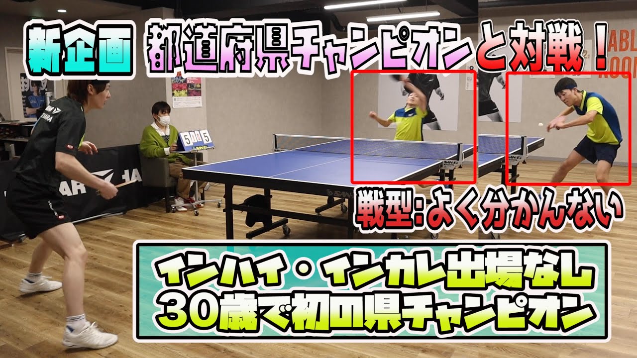 こんにちは西限です今回はちょっとアブ さんから新企画としてえ各県チャンピオン と対戦という企画を考えてきまして全日本 選手権予選のはい各県予選で優勝した人 47人いるんですけどはいはいどういう人 がいるのかなかなか知らないじゃないです かその件ではもう超有名人県てどれぐらい かっていうのも試楽しめるし一般の人にも 各県のチャンピオン一体どんな人なのかと いうの知ってもらうという企画でじゃあ ちょっとチャンピオンにはいていましょ チャンピオン初めまして青森県から来まし た松本と申しますよろしくお願いしますお 願いしますというわけで最新の青森県 チャンピオンさそうですねやっぱ各兼 チャンピオンって僕たち草プレイヤーから したらとんでもない人たちはいはいもう超 エリート中のエリートばっかりだと思うん ですけどちょっと松さん第1台に出すのは 失敗したなって思うぐらい面白い経歴の 持ちねあ中学校はカデットに出たくらいで あと高校は県予選で開けてしまっています はいはい日本予選も通過したことがない ジュニアでも通過してないですねでその後 新潟台に行ってえっとそこでも全学も出て ないでイカは団体戦として行ってるんです けど私はあのベンチにも入ってなくてです ねうんいつから通過し上げたえっと27か なちょうどコロナで2020年度か 2021年の全日本の時に初めて宮城県 当時宮城県に住んでいて三県予選を通過し てはいじゃあかなり先になるんですかね そうまどちらかと言ったら27で始めて出 てる人あんまりいないかもしれないそう ですよね初めてそのケチャンピオンになっ たのはま今回初めてですねあケ チャンピオン今回今何歳なんでしたっけ今 31になりましたこの前チャンピオンなっ てはいあるよあるとあのもない状態です すごいすめちゃくちゃおもろいしかも ちょっと線形も面白いということで最初 あの初心者の時はなんかペンを持ってやっ たりしてたんですけどその時なんか ラケットなくしてしまってでなんかこう カット用の家にあるラケットを使ってその ままカットま中学生高校生の時も結構 カットがメインでやってて徐々にあの大学 生ぐらいから攻撃の方にシフトしててって 感じですえ今何まって言えばいいですかね こ難しい難しい 分かりやすく言ったら間みたいな感じです よねああいうプレイをプ感じですよねあつ 出す情報れ [音楽] て