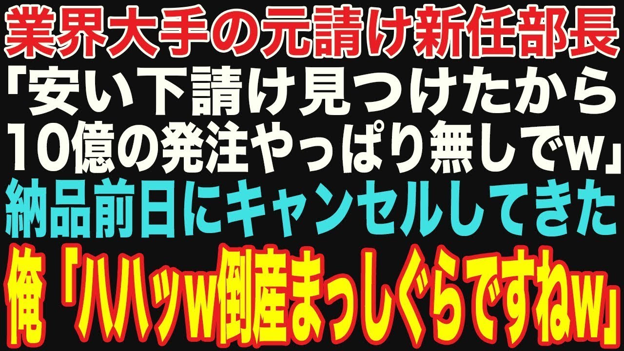 【朗読スカッと人気動画まとめ】業界大手の有能気取り元請け新任部長が「安い下請け見つけたから10億の発注キャンセルでw」と納品前日に言ってきた→俺「倒産まっしぐらですねw」【修羅場】【作業用】【総集編】