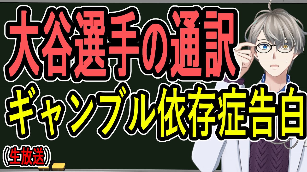 [音楽] [音楽] [音楽] はいえどうも皆さんおはこんばんにちは 犯罪学教室のか先生ですいかがお過ごし でしょうかというところでえっと衝撃的な ニュースが入ってまりましたね朝起きた時 からびっくりしてたんですけどまさかの 大谷選手の通訳さんがえまカリフォルニア 州では違法とされてるスポーツ ベッティングをしちゃったとあのスポーツ ベッティンググって何かって言うとあの スポーツトバのことですはいあのスポーツ トバのことすっごいかっこよく言うと スポーツペッティンググって言うんです けども めちゃめちゃ あのまあのスポーツトバクにしとき ましょうかはいあの生きる意味が全くない んでねスポーツバックにしときますけども でえっと解雇されるということになってい て大谷選手もどうやら捜査対象になって しまったでご本人もえ私はギャンブル依存 症ですっていうことを告白されたという ことでえっとま本当にもう何が起きてるか よくわからないうんような状況なんです けどま動揺されてる方見ると思いますしま 簡単にちょっと色々喋っていこうかなとま 今日はまゆ雑なのでま緩く喋っていこうか なっていう風に思います前半の方は現時点 で現地の報道をまとめましたあのギリギリ なんですけど中学生ぐらいのま英語ぐらい だったらギリギリなんとか耳に入れること ができるのでまあのポワポワしながらです けど色々その報道まとめてきましたま さすがにもう現地にあのふさふさを飛ばす ことはできないのであくまでも現地報道 ベースに今こういうこと言われますよとか えっとこういうことになってるみたいでっ ていうことであのお伝えする形になると 思うのでまだ確定じゃないということだけ ちょっと改めて最初にちょっと前置きだけ させていただいてえお話しさせて いただこうかなとま前半はどういうことが 起きたかで後半の方では何を話すかって言 とまギャンブル依存症と実はえっとま僕が よく喋るその薬物依存書結構似てるんです よねでどういうマズルを辿っていくかで今 SNSとかインターネット見てるとねこの 通訳の人に対してホボケこら貸すみたいな ことがねすごいバリぞ並んでるんですけど 実はこれねあのギャンブル依存症の人に 対してホアホボケかすこらって言っても あんまり意味ないんですよなんでかって 言うともうやめれてるんだったら自分の