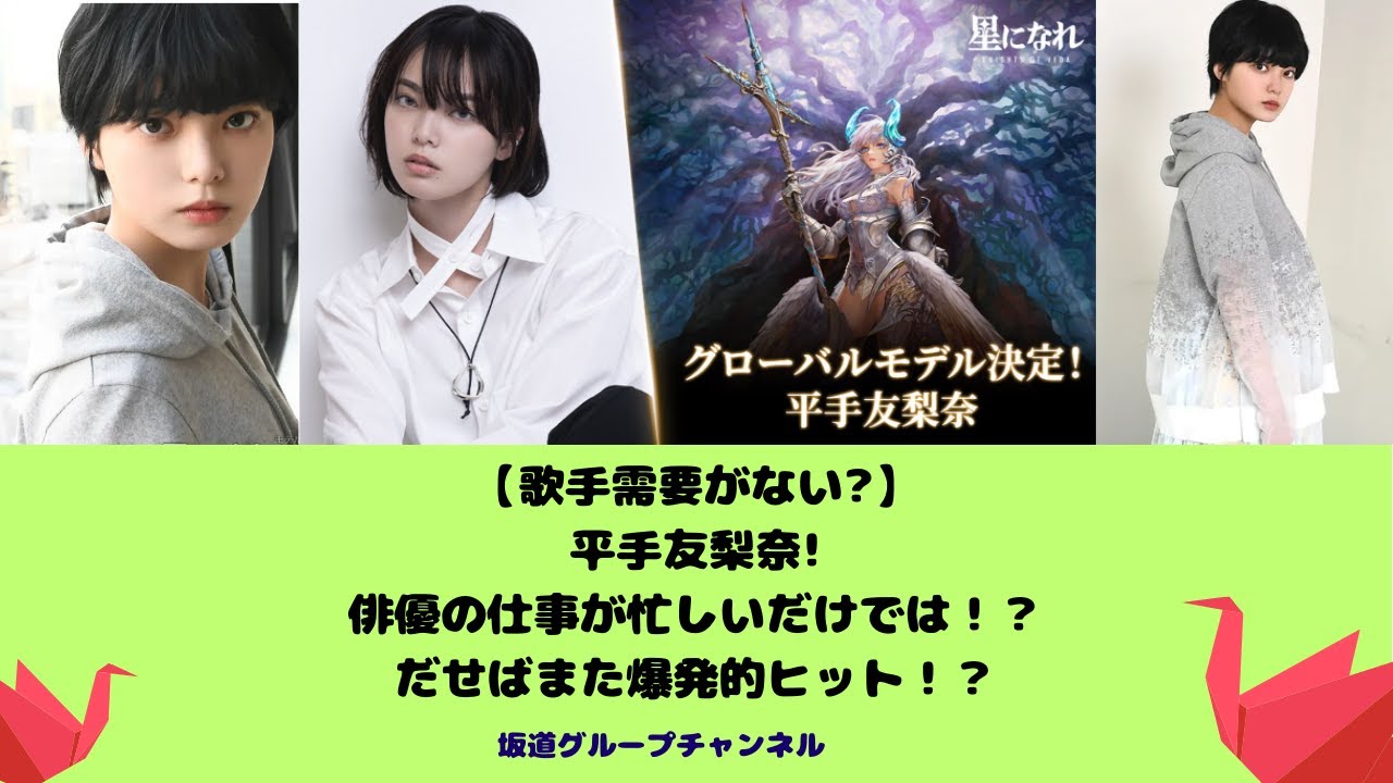 欅坂46の平手由奈グループから電力脱た したあれから4ねんでしょうか彼女の体は 当時は衝撃的な出来事でした ね皆さん坂道グループチャンネルへよう こそ是非この機会にチャンネル登録お願い しますまた動画をご覧になったら高評価の いいねお願いし ますいつか自分が話したいと思った時に 機会があれば話させていただこうと思い ますと体理由については明らかにしません でした平手ユナが歌うゲーム星になれテマ 直絶望の女神が配信 開始久しぶりにての歌声聞けた今回の歌声 ちょっとだけアムロちゃんに似てる感じが したけれど嬉しい1回聞くとまた聞きたく なる曲です平手さんの歌声も素敵ですちよ てやと歌ってくれた いやいやいやもう歌手の需要なくなって ますやんまだ歌手活動やってたんやもう 俳優1本だと勘違いしてたインスタも たった20万だし秋本安の力がなくなっ たらこんなもん演技仕事が増えるほど歌詞 としてのイメージがぶれていくからなもう 歌手需要はゼロね配信してることも知ら なかったもはや歌詞としては売れないと 思うしかし俳優として彼女の活躍はなでで 足活動ができないのか歌がないのか 果たして需要がないのか欅坂を体した後は ダンスの理由けえのない世界共に ものすごい反響でし た本当にダンスした歌ったりするのが好き なんだなってのが伝わってくるアイドル グループ体してソ活動されてる方たくさん いらっしゃるけど彼女は自分を生かせる 場所を見つけられたんだと実感しました 長くパフォーマンス見せてほしいです好き なん手玉に聞かれるけど手の魅力って言葉 で言うの難しいんだよねなぜだか引きつけ られるんだよなむちゃくちゃかっこいい ダンスも曲のメロディも激しくて最高です 気合い入ります心ないおから平手のせいで 他が目立たないとか平手ばかり優遇され てるとか言われてたがこの子は例え2列目 だろうが3列目だろうと見る人の目を 引きつけただろうな持ってる雰囲気が違う 女優でもあり歌手ダンサーでもありもする とは平ゆちゃんすごすぎケな才能を神から 与えられた唯一無の存在ですダンスの理由 を見て平手由奈ちゃんの熱烈ファンになり まし た欅坂を体してもソロ活動を見てファンに なったという方も多くいるようですね まだまだ歌詞として俳優としても認知度は 高く感じれます今後も彼女を応援していき [音楽]