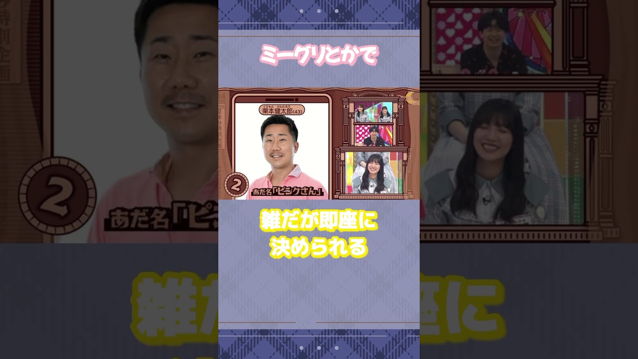 おひなの特技はエレクトーンなど色々な 特技を作ろうとするがどれもそんなに 長続きしない自分の前世は生け物と答える パンダが好きで名前はクラゲとしたいと 言っておりまた一緒に生活したいという 願望があると過去に語ったひなは実はか年 やお竹から過剰なスキンシップを受けてい たことがあるミーグリとかでファンの人の 名前を雑だが即座に決められるメンバーの 手鏡を無断で使ったり取ったり下年の アンケート用紙を3冊マットとして使って いた即興芝居でこそ泥と言われながらも 警部を守ろうと代わりに打たれたカを向い ている時に共にいた美人や春さんと仲良く つまみ食いしていたアイドルに興味がない 岸さんを色々と翻弄したが顔が可愛いと 言ってもらえたので顔をあめ た