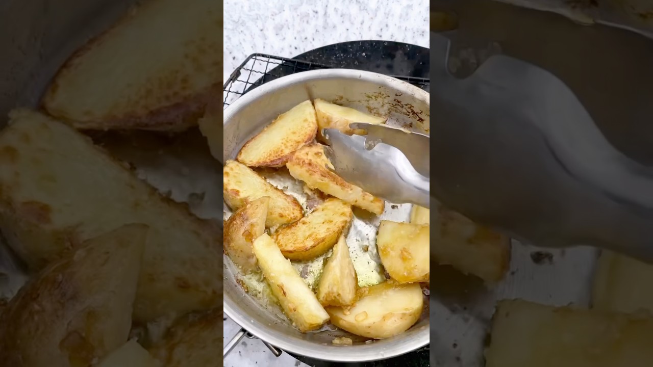 雪山でワイルドにフライドポテトを作る!Make wild fries in the snowy mountains! #shorts #easelartstudio #asmr