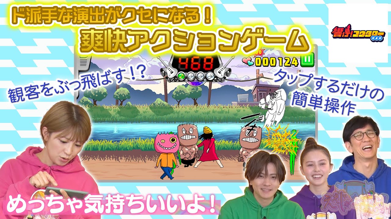 総会アクションで癖になるゲームの時間 ですよゲームゲームだロジミュージシャン が観客をぶっ飛ばすノジ爆発のアクション ゲーム響け高太郎 上敵をタップしてぶっ飛ばす総会感とど 派手な演出がくせになりますああバトル だけでなく街の散作アイテムコレクション ミニゲームでも楽しめますいろんなゲーム 謎のゲーム設定とアクションが魅力配信前 から話題になっているそうです前からここ からは新しいスマホゲームの話題ですはい 主人公はさすのストリートミュージシャン 彼がロシライブでファンたちを倒すという 謎の設定と本当謎だよそしてアクションが 特徴というゲームだそうです一体どんな ゲームなのかということでドカ総会 アクションゲーム響け孝太郎路上編を紹介 しますはい株式会社デジの伊藤さんです よろしくお願いしますよろしくお願いし ますコンセプトはですね指1本で作で汁 爆発の総会アクションゲームとなってます ね最高だねサスライのストリート ミュージシャン高太郎操作してですね ストリートファンをぶっ飛ばすそして色々 なミニゲームを楽しんでいただけるゲーム となっておますミニゲーム 一見こ太郎がファンをぶっ飛ばしてるよう に見えますけれども実はぶっ飛ばしてるん じゃなくてですね孝太郎の演奏に感動した ファンがですねあまりの感動と快感に自分 が飛んでいく錯覚を起こしているはあ操も 簡単なんですねッてですね太郎がギターで ぶっ飛ばす総感その後に発生する派手な 演出が見所なんですねまた一定の確率で スペシャルタイムに突入します激熱な演出 にもこだわってるそうですへそしてファン を倒すとですねゲットできる通貨こで アイテムを獲得できるんですねうんここ からは矢口さんに響孝太郎路上編をプレイ していただきましょう頑張ってくださ ライブ行きます ライブラ くださいえあ来た来た来た何回か すごいあなるほどねすごいうわ気持ち良さ そうだね確かにめっちゃ気持ちいいよ かなりバキバキやってますね快感はすごい からこんだけ派手アクションな割にはほら キャラクターがチープなんだよですよね 確かにうん おおファンの方たこれファンがして飛で いっぱい来たうおいいねファンの方た感動 させてせこれをちょっと長落ちすると [拍手] どうなったのどうなったの今ちょもう1回 もう1回すげえすげえすげえおお回ってる
