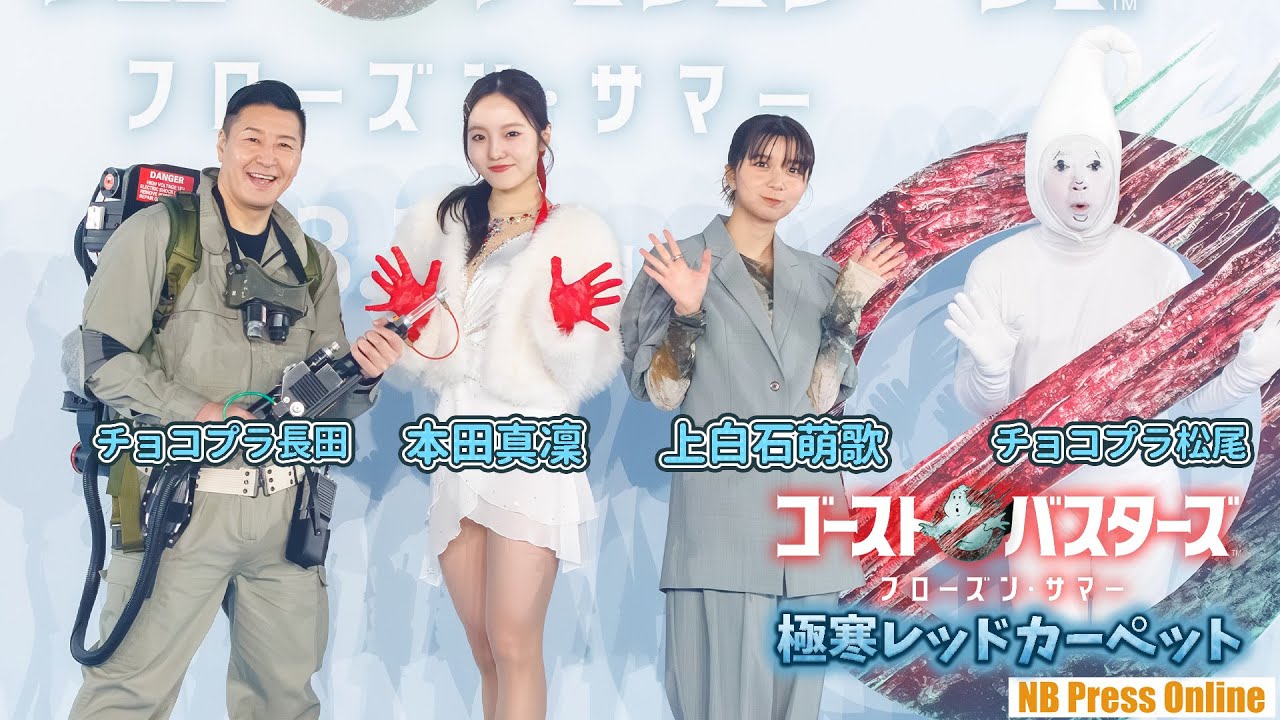 (見どころ頭出しあり)2024年3月13日、KOSÉ新横浜スケートセンターにて、映画『ゴーストバスターズ/フローズン・サマー』極寒レッドカーペットイベントが行われ、本作の日本語吹き替え声優を務めた上白石萌歌、チョコレートプラネット(長田・松尾)、本田真凜が登壇。本田真凜は、日本語吹き替え版はみ出しカバーソング(新しい学校のリーダーズ)に乗って、アイススケートショーを披露した。