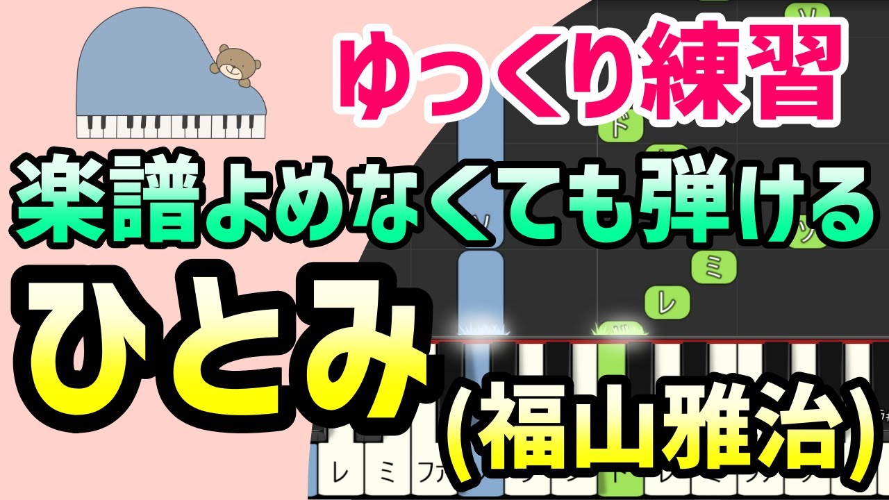 【初心者でも弾ける】ひとみ(ドラマ「春になったら」主題歌・福山雅治)ピアノ簡単アレンジ*ドレミ付きゆっくり*1本指*片手だけ*両手でも