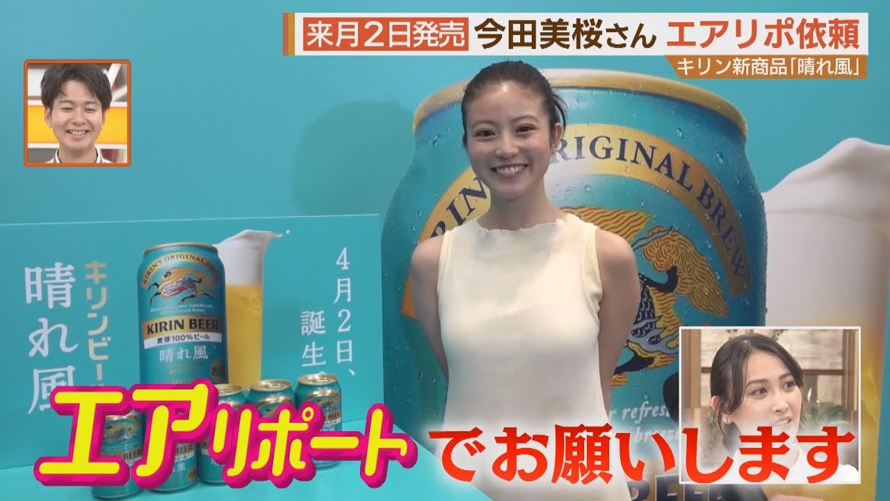 ました言ってましたよえ さんさん リポでお願いしてもいいです か今田さんに言われたらなちょっと発前の このビール中身は入っていますが借り物と いうことでまさにエアリポートの出番今田 みおさんから直接オーダーされちゃいまし たまし たおお綺麗な色になってますじゃあ ちょっといっぱいいただきます 見える透がうーん喉越しがいいですね苦み が少し抑えめになってるのですごいなんか 初心者の方でも飲みやすいビールになって ますすごい爽やかなお味です ね限界すかいやもう超限界ですちょっと 泣きそうです今なんならえ大丈夫ですか 大丈夫すよえ本当大丈夫ですか大丈夫です よ本当にすごい人たち巻き込みすぎですて 絶対っと個人まりこうやるべき企画なん ですよこんなすごい人を巻き込んじゃダメ ですって絶対そんな企画じゃないいや ちょっとすごいねだいつもより気合い入っ たエアリポートになってますちょっと緊張 してましたで喉越しはMGワードじゃない んですかそうMGワードは今回はなかった んですけどまさかの方から指名ということ で緊張しましたけどえということは来週の その発売に合わせてまたリポートする リアルリポートがあるかもしれないという けどえさだから飲めばよかったそうなん ですよ金気に冷えてるビールを渡されて 飲んじゃダメということなったん ですビールの販売楽しみですよ石井さんも ビール好きなので気になるじゃないですか そうですね4月2日ってなってたんで なんか桜せっかく咲いちゃったからなんか 早くそこで飲みたいこれからのお花 シーズンにも全然場所取ります僕ますお 願いしていいですみんできましょみでき ましょいいかもしれないですねキリの晴れ は晴風は来月2日に福岡でも新発売され ますので皆さんもリアルでぜひ味わってみ てください