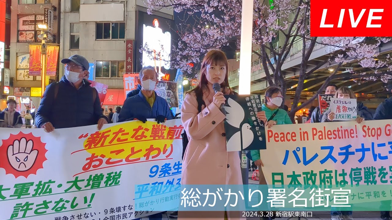 Live!◆憲法無視の武器輸出 戦闘機輸出閣議決定許さない■憲法改悪を許さない 総がかり署名街宣@新宿駅 東南口 2024/03/28