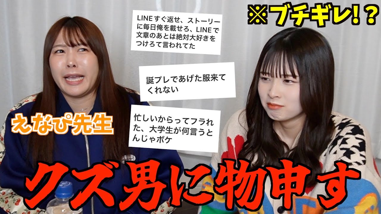 こんにちはあちょっと待って気づかなかっ たもう辻ちゃんコラボになっちゃうから じゃなくてや危ない危ない危ない危ない こんにちは加藤のですこんにちは山下え ですよろしくお願いしますよろしくお願い し ますはいということで本日は園なのえな ちゃんに来ていただいたんですけれども バレンタインの動画出てもらってからはい いただきました好評で仕方がないあ本当に よかった嬉しいもう好評もう好評もう みんな大好きエえなになってきたああいい ねなんでちょっと取っちゃおうよっていう ことでお呼びさせていただきましたはい ありがとうございます本日は本日 は くず 元つまづくの早いって本日は元恋人となう 恋人のクズ エピソード言えたねうんはいんはいなんか ムエなチャンネルは結構募集系 YouTuberなんかなっていう風に 思っていてま私もそれを追っているような もんそうそうだったん だまほぼ募集系YouTuberああそう なんだはいみたいなとこあるんでま一緒に 募集していこうよって男女どっちでもいい んだよねこれどっちから受けますやって いきたいと思いますよろしくお願いし願い しますでこれはあのどうなのってどうて いう聞きたい聞きたいうんタンプレであげ た服を着てくれないうわあどうでしょう じゃあなしかりようんうんせーのなしです よねあれなパターンとあんの逆に別に気に しないみたいな別にいいかなみたいな タイプじゃないですえちょっとこれ気にし ちゃうなねまクズではないんだよまあまあ そうだねクズではないんだけどなしうん 普通に例えばあげました次のデートとかで も来てきてほしいもうちうちも実際に なんかあげたやつをなんうちだったらすぐ つけちゃうの次の人次のデートとかにもう すぐつけてってえもつけてきたよって感じ じゃんなんだけど来てくれてなかった時あ うんてかいつきんの逆そそういつきんのみ 逆にそこで来なくてえそうもうそれだけで もあれってなるからもう1回も来てくれ ないとかは結構論外外もう次のデートで来 てきて欲しいわけうちはそれなえわかるえ だよねどういうシーンなんだろうそうそう そう大事にしたいとかもいないみたいなあ それはあるのかも来て欲しくてあげてんの えそうそうそうそうそうそうそうそういや これはね来た方がいいもうなんなら何回も 来てほしい毎回なんかもう毎日それでいい