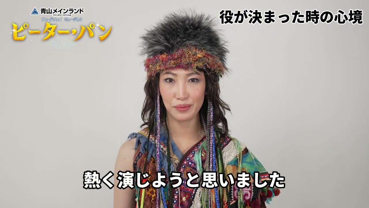 皆さんこんにちはタイガーリリー役す レイナですまずは驚きが最初に来たんです けれどもあの自分がこの役割を勤められる のか不安なところもあったんですがまずは 腹をくって熱く演じようと思いました昨年 あの森人で出演していたのでタイガー リリーのこう求心力っていうものが1番 大切かなと思うのでみんなをまとめられる ように強く演じたいと思いますま歌や ダンスはもちろんなんですけれども パルクールだったりとかアクションだっ たりとかあの派手で見応えがあるものが たくさんあるので注目していただきたい です大人も子供も声を出して楽しめる作品 になっていると思うので皆さんで暑い夏に しましょう劇場でお待ちしております