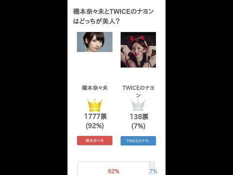 #橋本奈々未 と #TWICEのナヨン はどっちが #美人?というテーマの投票結果です。