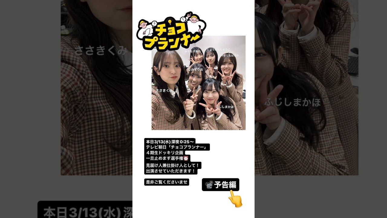 日向坂46 本日3月13日23:45〜『 くりぃむナンタラ 』 24:25〜『 チョコプランナー 』ぜひご覧ください!