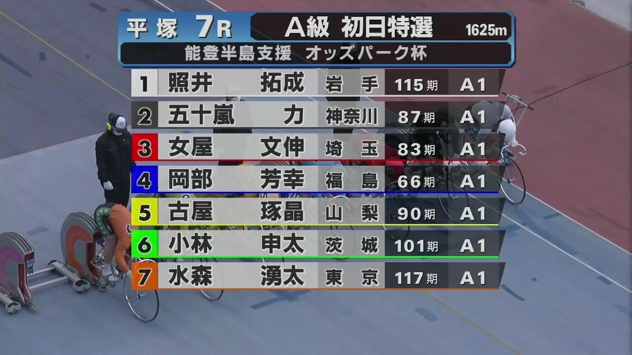 番岡部之が上昇3番小文最7番水森優太 です第3コーナーです1番岩手成先頭来は SQに復帰します手成同じくラキはSQ ベテラン岡部義行1番4番東北勢です3番 手2番短期の井力4番手から5番山梨の 古谷高明です栗谷もラキはSQ平塚2年半 ぶり山梨の気動力タイプマーク6番茨城の 小林新タ5番6番は関東勢7番東京水森 優太が6番手 から2月の日で100勝達成そして モーニングは現在2連覇中7番水森優太 マーク3番埼玉 小文高バンク小文信です埼玉東京コンビ7 番3番です2周回目の2センター先頭1番 岩手の手成です名門日本大学自転車部出身 ですマク4番車岡石昨年の統で600勝 対成していますアウトコースからる埼玉 東京コンビニ7番3番打集1コーナー1番 手たくなり3番手に引きました5番の古谷 高明が6番手2コーナーからバック ストレッチ一旦流して7番水森優太マーク 3番小谷 文信今ジャンが鳴りました手たくはまだ 仕掛けず3番手です5番の古谷高明も6番 手のまま第4コの余ってここは水森優太 そのまま逃げますマーク3番小谷文です今 残り死を切りました7番3番1番下手たく な絶好のマポジション3番手2コーナー からバックストレッチ2コーナー手前から 1番の照井成がまくる最強勢をまくり切っ た1番照井成追走4番岡義行その外から 突っ込んでくる5番の古谷高がいい足で 上がってくるこれを牽制する照るたくなり 4コーナーまカードを合わせる古谷高さあ ここは伸びていくフア高外から2番車が 伸びて5番2 番7レース永久得点 競争栗谷高明が手成を捉えて先頭でゴール イン外から2番車のいし力からです5番2 番1番が足りに見えまし た今日の最終レース7レス永久特選 競争まだ確定ではありません5番2番1番 あたりに見えまし たお手持ちの投票券はそのままでお待ち くださいまだ確定ではありませ ん6番選手 が今単価に乗ってい ます6番選手が今単価に運ばれてカトムに 向かってい ますお知らせお知らせいたしますただ今の レースは審議いたし ます放送の通りこのレースは審議となり ましたお手持ちの投票券は決定放送が出る まではそのままでお待ちください 第7レースの思いでし