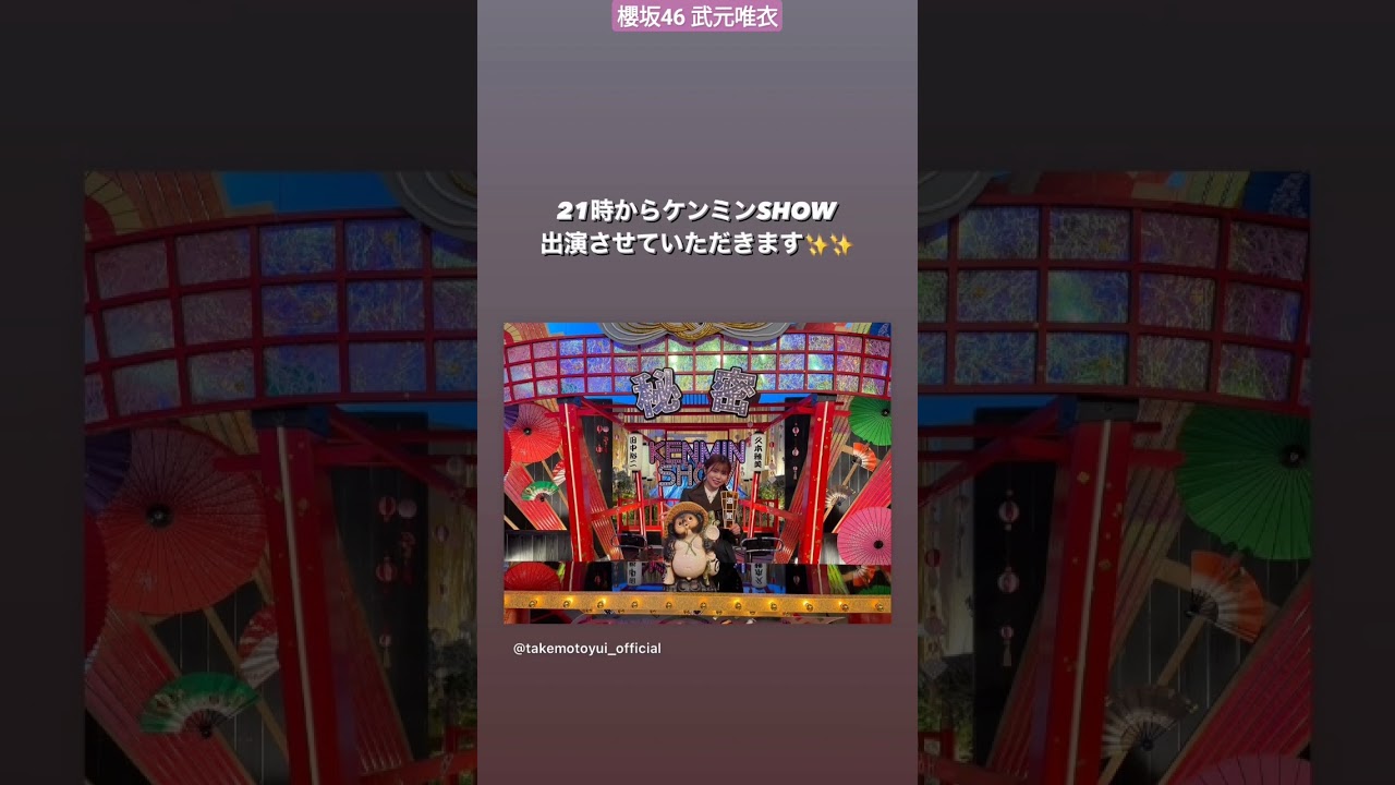 櫻坂46 武元唯衣 本日3月14日21:00~「 秘密のケンミンSHOW 極 」に武元唯衣が出演いたします!ぜひご覧ください!