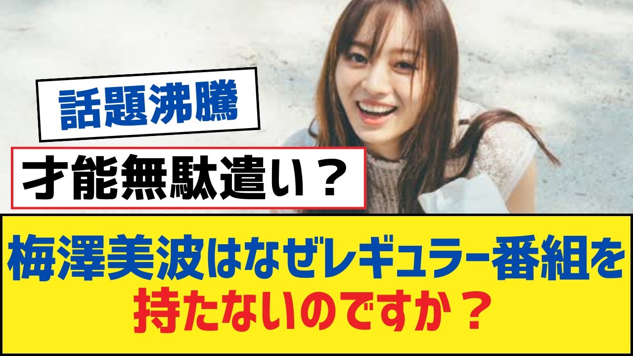 [音楽] 梅沢南はなぜレギュラー番組を持たないの です かメインメンバーなのになんでレギュラー 出演がないんだろうキャプテンなのに卒業 が控えているわけでもないんだし山下は 朝ドラで久保はANNやタガで結果を出し てるのに与田だってテレトシやドラマだ けど続編が出るほどの結果を出してる バラエティに単独で出演することもある けどたまにしかゲスト出演しない程度だよ 梅沢が特に他のメンバーに劣っているとは 思わないけどね舞台もドラマも映画もやっ ているんだよさタイムでも一の瀬は 切り抜きのYouTube動画が流れてき たけど梅沢の時はほとんど見たことがない 乃木坂だからアカ山した与田と仲がいい から本人に需要がないと思われるタイプか もしれないね梅の演技は好きだけどあの 身長だとできる役が限られるかもしれない ね空手を生かしてアクションとか殺人とか どうだろうか時代劇やタガドラマでくのイ とかもいいかもしれないねあんまり喋りが 面白いとは思わないからラジオはなくても いいけど演技はまあまあできるからドラマ とかやってほしいな卒業してもモデルとし てやっていけそうだけどエリの実績も積ん でおいた方がいいと思うよ今となってはな 話ではあるけどanは梅沢がべな選択だっ たかなざの方はせにやらせちゃったし ラジオ梅沢がやってれば早川が飛ばずに 済んだかもしれないね梅沢の逆転は変更 負荷だと思うけどね一般人から見て最も ストレートに美人だからね歌番組なんかで 梅沢が良い位置でトクするのが最もさすが の木坂だねという印象を与えるよ梅沢が anをやれば久保よりもメンバーゲストが 増えるかもしれないねそもそもanは スタッフ一動が久保で万定一致って意見 だったから梅沢だろうが他だろうが選択肢 にすらないんだよキングダム見たけど美人 だしスタイルもいいからもっと出た方が いいねただし主演の177cmの俳優と 並んだらほとんど身長が同じだったことは 秘密だ よ