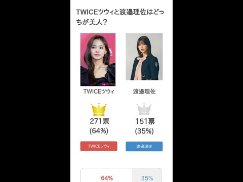 #TWICEツウィ と #渡邉理佐 はどっちが #美人?というテーマの投票結果です。