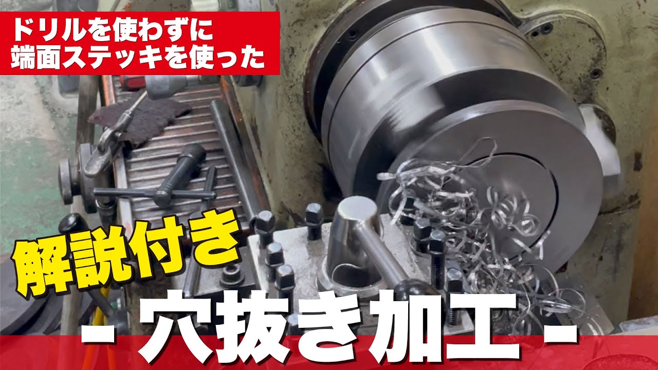 【葵商店】技術編 汎用旋盤を使用してドリルを使わず端面ステッキを使った穴抜き加工