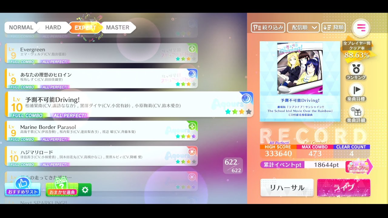 【スクフェス2】(204-3) 予測不可能Driving! EXPERT All Perfect【ラブライブ!スクールアイドルフェスティバル】【MIRACLE LIVE!】