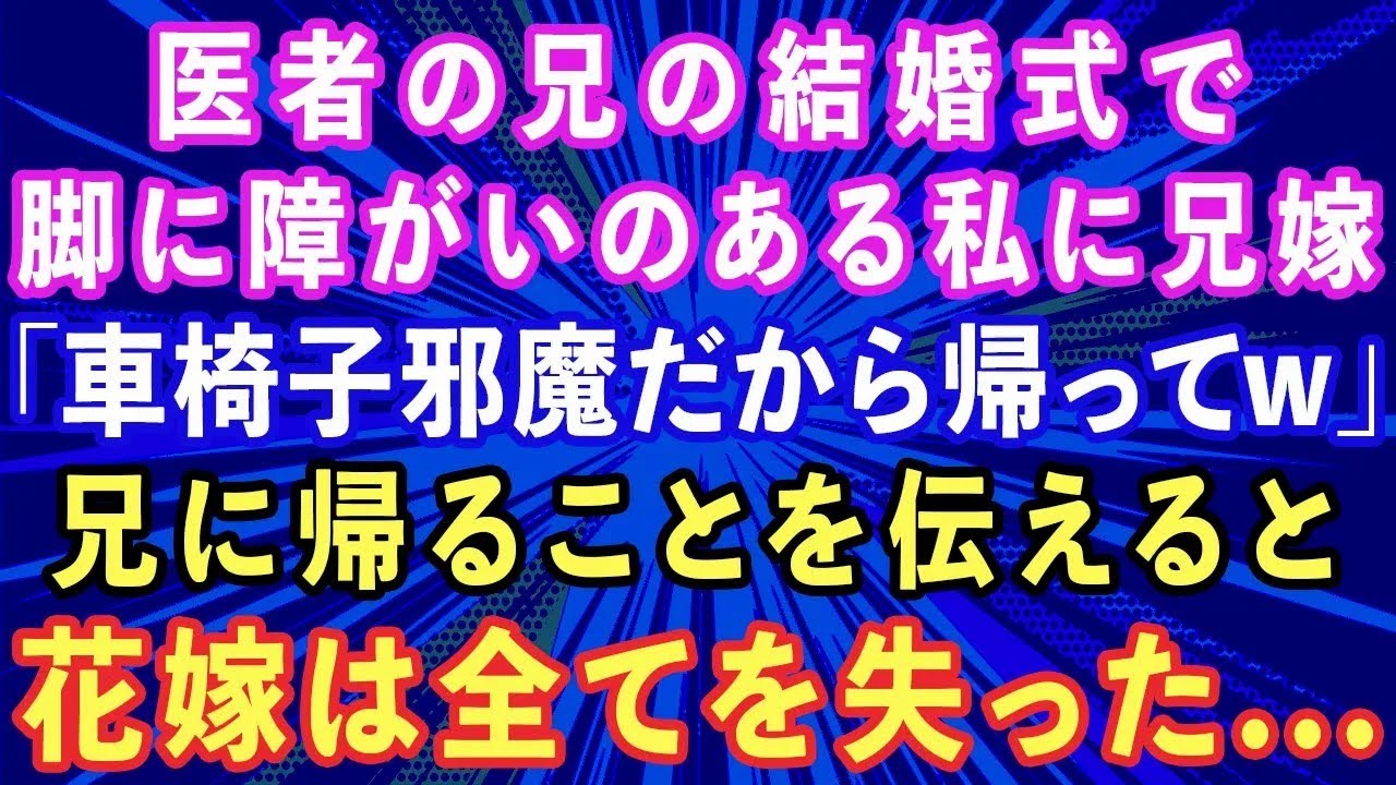 【スカッとする話】医者の兄の結婚式で足が悪い私に兄嫁「車椅子邪魔だから帰ってw」兄に帰ることを伝えると、兄嫁は全てを失った 【感動する話】