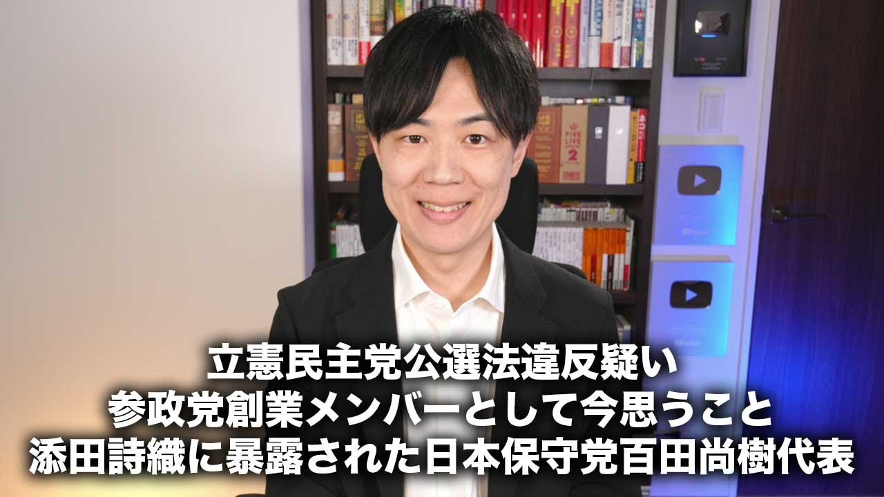 立憲民主党杉尾議員のSNS発信が公選法違反疑い→シレッと削除 / 参政党創業メンバーとして今思うこと / 添田詩織に恥ずかしすぎるやり取りを暴露された日本保守党百田尚樹代表