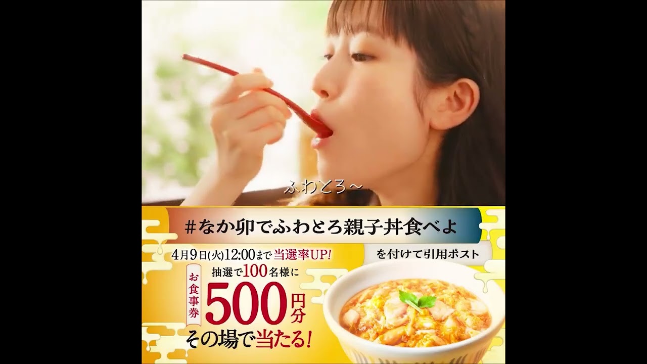 ②【#なか卯でふわとろ親子丼食べよ 】と食べたい気持ちをつけて引用ポスト pic.twitter.com/K71zYcyW4g— なか卯【公式】 (@nakau_info) April 9, 2024