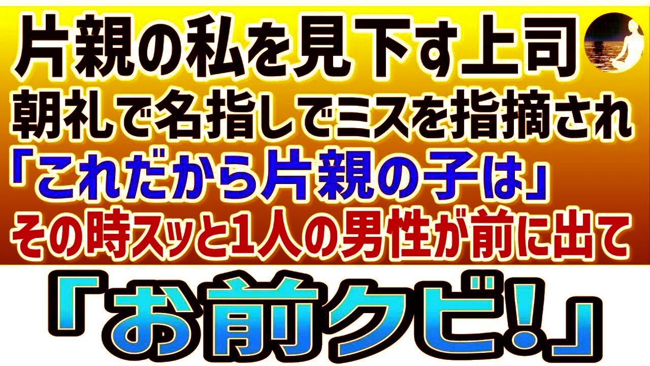 【感動する話】片親の私を見下す上司。朝礼で名指しでミスを指摘され「これだから片親の子は」その時スッと1人の男性が前に出て