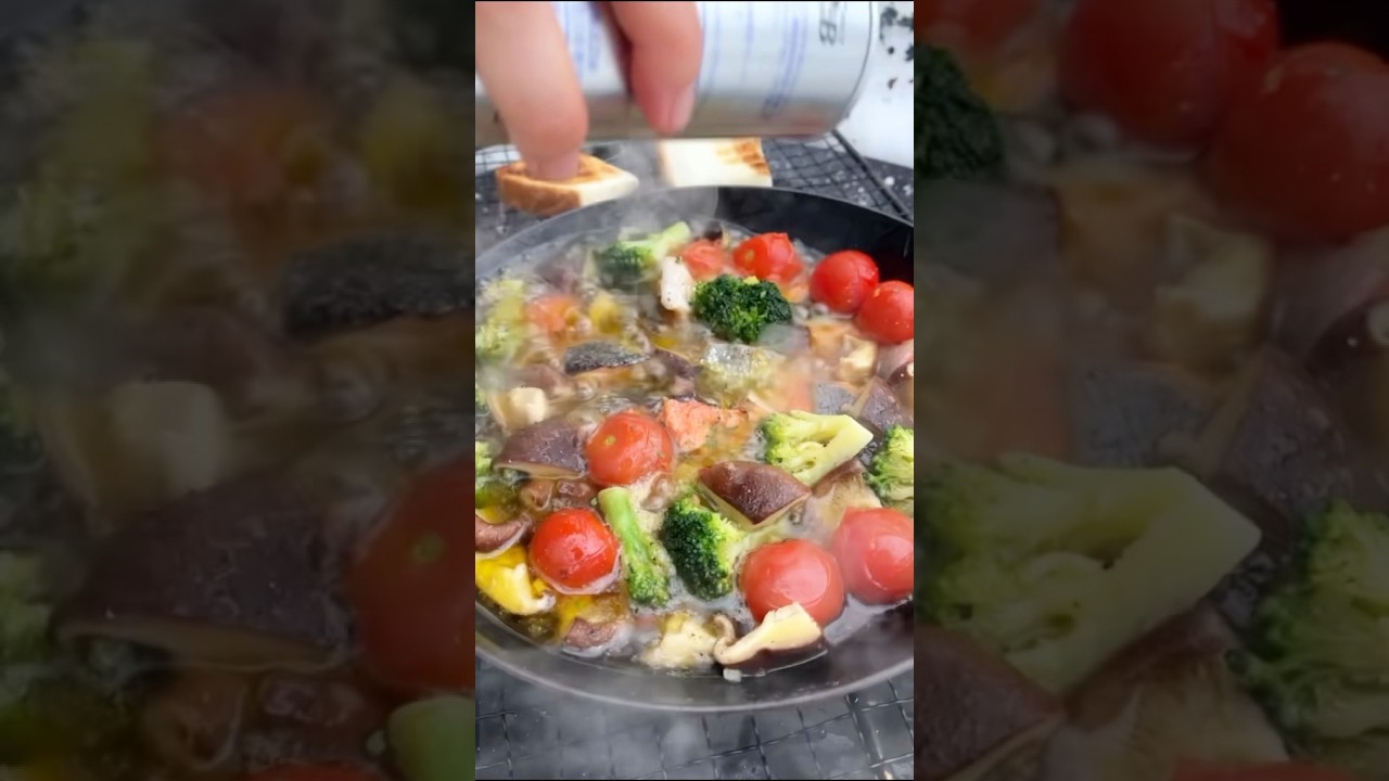 雪山で作る絶品「アヒージョ」Delicious “Ajillo” made in the snowy mountains #outdoor #cookinginnature #asmr #shorts
