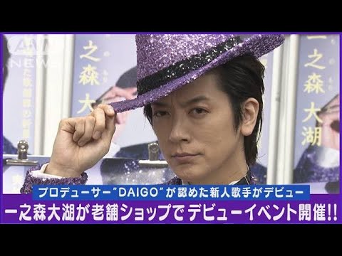 一之森大湖はプロデューサーのDAIGOと“うり二つ”の見た目をしているシンガー。プロの歌手を長年志していて、デビューできずにいたところ、DAIGOとの出会いがきっかけで、2024年4月10日に念願のメジャーデビューを果たした。老舗ミュージックショップ「赤羽・美声堂」で開催されたメジャーデビューイベントには、300人のファンが会場に駆け付けた。