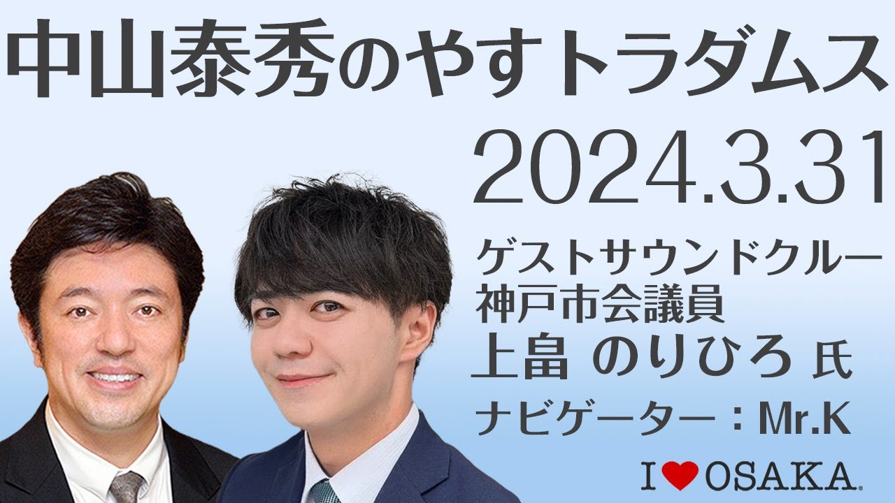 中山泰秀のやすトラダムス 2024/3/31 放送分 ゲストサウンドクルー:上畠のりひろ神戸市会議員
