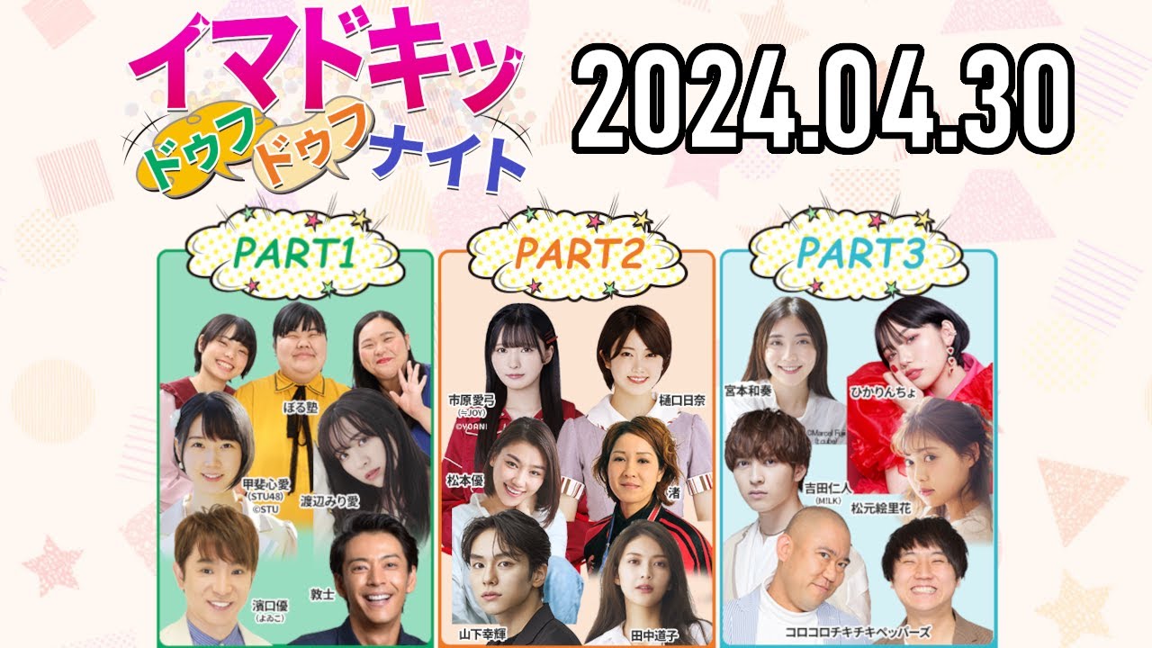 【2024.04.30】イマドキッ ドゥフドゥフナイト【よゐこ濱口、甲斐心愛(STU48)、渡辺みり愛、ぼる塾、樋口日奈、市原愛弓(≒JOY)、コロチキ、吉田仁人 (M!LK) etc.】