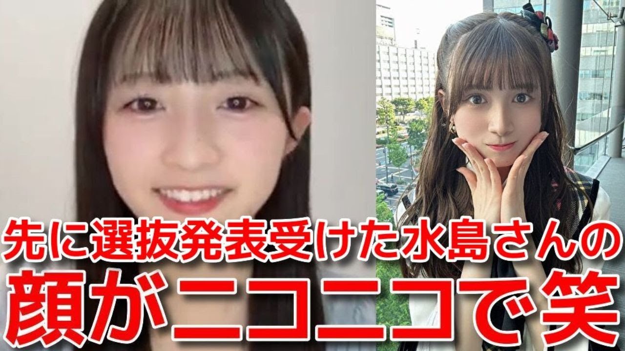 こんばんはそうなん です皆さんのおかげで選抜64枚目 シングルも選抜に入ることができて とっても嬉しい ですありがとうございます皆さんいつも 応援ありがとうござい ますまた頑張りますこれから もなんかやっぱり2 作連続ってのは難しい ところもあったりするのかなと思って てそのなんだろう選抜に入って選抜に入っ た後から の目標みたいな今後の目標みたいなのでも ずっと言って てでそれがまた叶えることができ てはい本当に嬉しい気持ちでいっぱいです これからももっと頑張ります頑張っていく ので皆さんこれからも応援よろしくお願い し ますそうなんですやっぱりゆきりんさんが 卒業されて 新しいというか次のシングルすごいなんか 大切だなっていうかまた新しい日をしって もらうのに大切なシングルだかなって思っ たの でそんなシングルでね選んでいただけて すごすごい嬉しい ですえ新選抜の2人 にお言葉を くださいレミさんは前になんか結構前に 多分 確かショールームで気になってるっていう 話をしてくださってその後あのしった かぶりの時に一緒になって 歌わも一緒でだからあのすごいその時にも お話できてそうでもなかなかね同じ公演に 出ることはなくて最近 あの今日は誰に声をする講演で一瞬だっ たりした時も少しお話できたんです けどそうであの撮影の時もお話できて すごい楽しかったこれ からさんと一緒にに写真撮りたいです いっぱいでまゆちゃんも すごいねなんか私たちが入ってきてから すごい気にかけてくれくれたりと かすごいなんか公演の時とかもすごい熱心 に教えてくれたりとか私がたちがわかん ないことを全部説明してくれたりとか は すごい本当に気にかけてくださったんです よ18機の ことなんか私的に公演とかあるとすごい 楽しくてマちゃんと喋るのすごい楽しくて 面白いんですよすごい面白いし可愛い し好きだから一緒にこれから活動できるの 嬉しいです あそうあにね隠した 話あの私の発表の後があだったんですねで あのちょうど入れ替えでちょっと被るん ですよで私 はあの私の前は多分水島さんであの劇場出 てきた時にすれ違ったのかなそれで なんかすごいニコニコされててあ今日の 撮影すごい楽しい撮影なんだなとか思って たんですけどそうニコニコていうか結構 なんかニコニコ感じが出ててあすごい相当 楽しい撮影なんだなって思ってたんですよ だから何するんだろうって思いながら うがってでなんかもう本当にそれで表を 受けて何も知らない状態ですごい嬉しかっ た し多分あの動画のくらいは固まってたと 思いますそしたらスタッフさんがほあの 近くで本当ですって教えてくれましたえほ 本当嘘本当みたいな感じでへへとか言って たんです よだ から教えてくれました