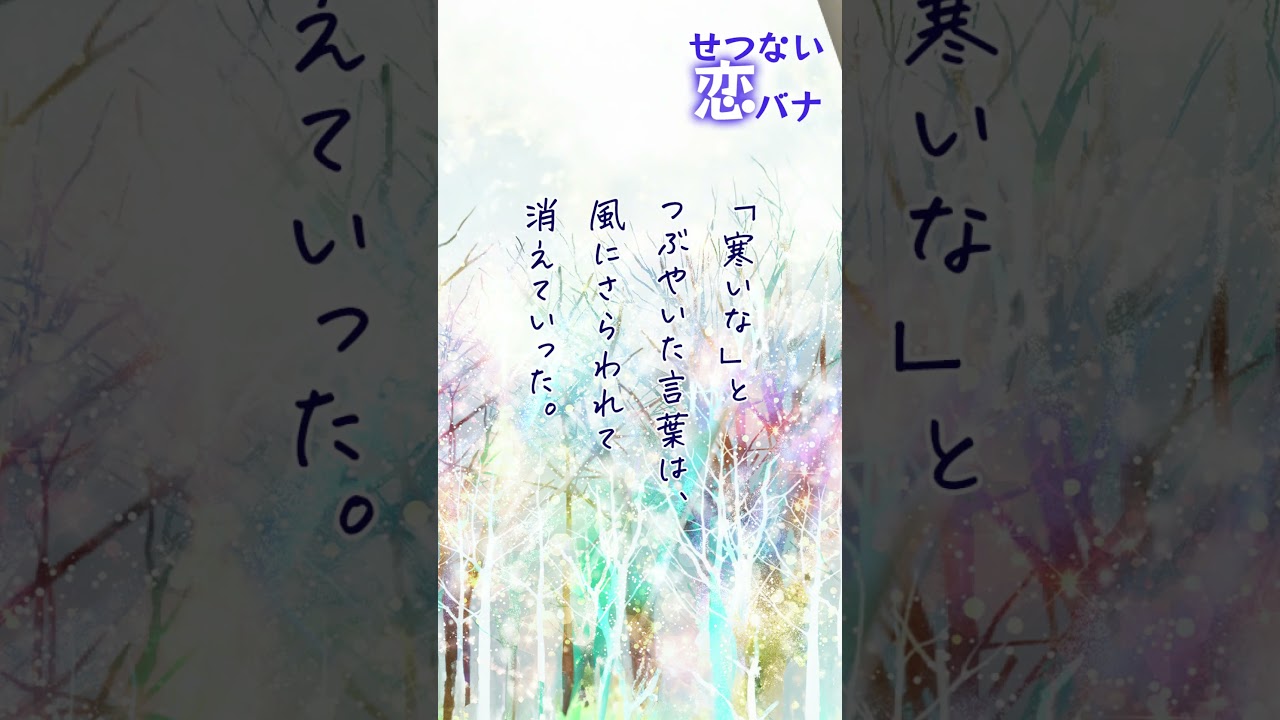 空気が 冷たい縮こまる体を自分でぎゅっと 抱きしめ たこえる手を握って温めてくれた優しくて 大きな手はもう ない寒い なと呟いた言葉は風にさらわれて消えて いっ た