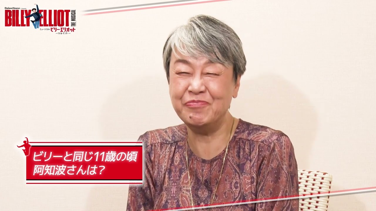 ビリーのおばあちゃん役のあはさと ですとっても嬉しい気持ちでいっぱいです 前回はもうドキドキしちゃってなんか混乱 していたんですけれども今回は少し 落ち着いてこの役に取り組んでいけるかな と思っていますビリを取り巻くいろんな もの人時間空気が彼を成長させていくて いうところでしょうかはい希望がそこに 生まれるっていうそれはすごく素敵だなと 思いますおばあちゃんがあの歌った後に私 の手をビリーが取ってくれてそこに最後に チュっとしてくれるんですけどその時の ビリーの顔がたまらないんですあの子供 たちどの子もで今回のえっと4名のビリー たちはどういう風に私のこと見くれるのか なっていう風に思っています北海道の本当 に田舎のあの町で育ちましたので秋になる とキノコがここに入るとかそんなこと ばかりを考えてるえ11歳頃でしたもう 本当に山の猿さんみたいな漠然と思ってい たこととしては小学校の先生になりたいな と思ってました数々ミュージカルもやって きましたけれど 曲ご1人で歌うていうのはこのビリ エリオットが初めてだったんですままソロ しかもダンサーがついてていうのはもう私 にとっては大切な大切な宝石のような作品 [音楽] ですこの作品 [音楽] はどんな方が見ても感できる作だ思います 育をしていこうて悩みなんかもあるかも しれませんがそういう悩みにもちょっと ヒントをくれるようなそんな作品だと思い ますので是非ぜひ皆さん一緒に手をついで いらしてください [音楽]