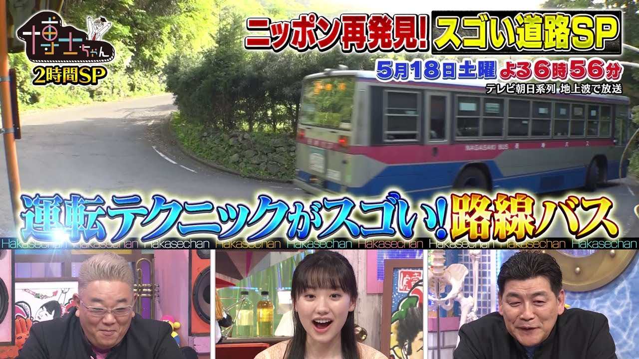 5月18日(土)サンドウィッチマン&芦田愛菜の博士ちゃん スゴい道路2時間SP!今乗るべき!ずっと残してほしい秘境路線バスを爆笑授業!